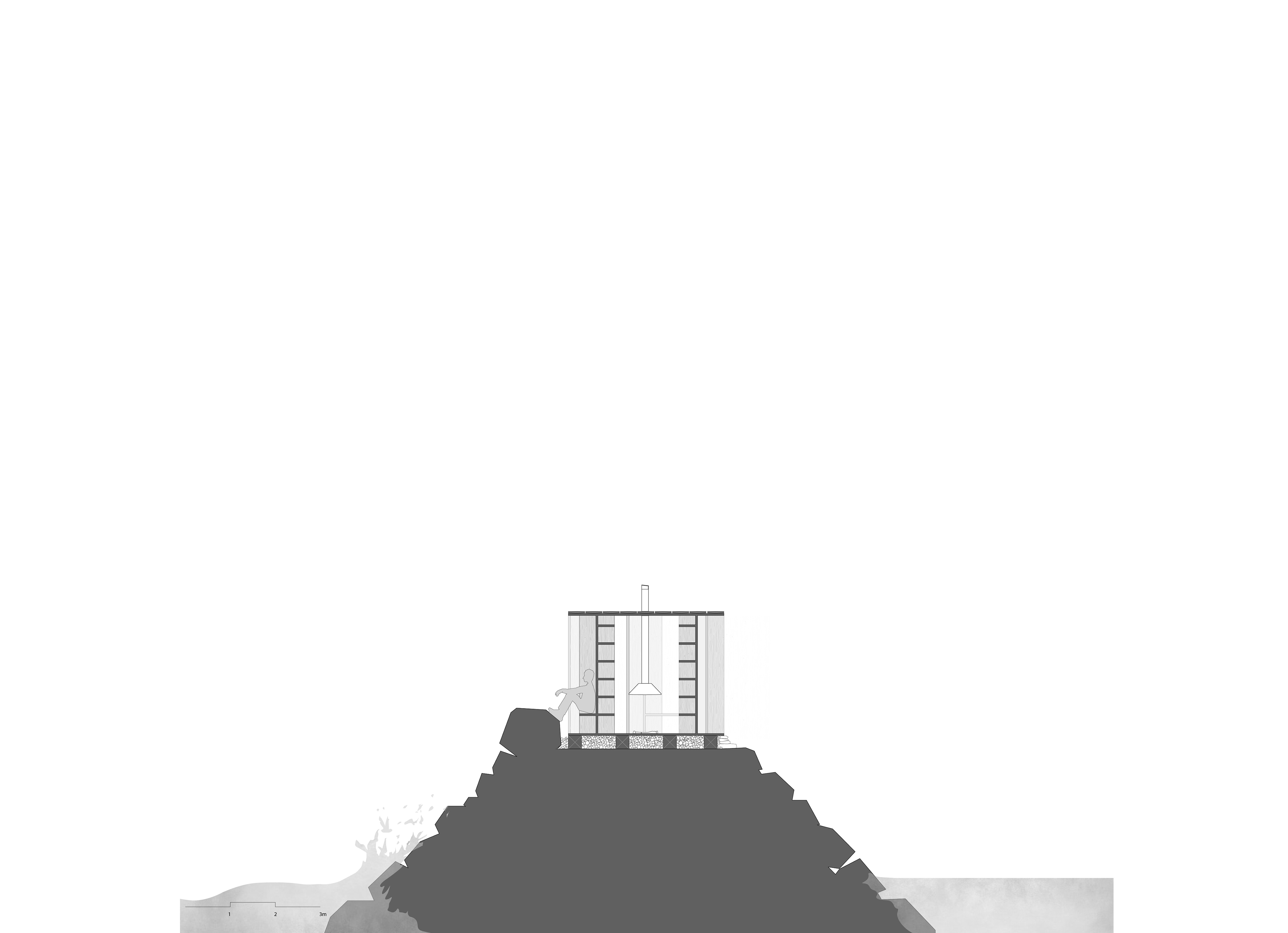 While standing on the edge of the town, you can’t but notice the scale of the landscape. The fjord just continues westward for kilometer after kilometer, until it meets some distant mountains. The fjord itself is flanked by sloping mountain sides, creating a layered landscape that stretches towards the horizon This outermost part of the town is formed by a man made breakwater, intended to protect the harbour from the unhindered weather from the west. In this place, Lykta was formed to become a meeting place for locals and tourists. A discussion that arose throughout the process was how to handle the views on the site, as how relate the visual experiences of being inside Lykta, with the given context.